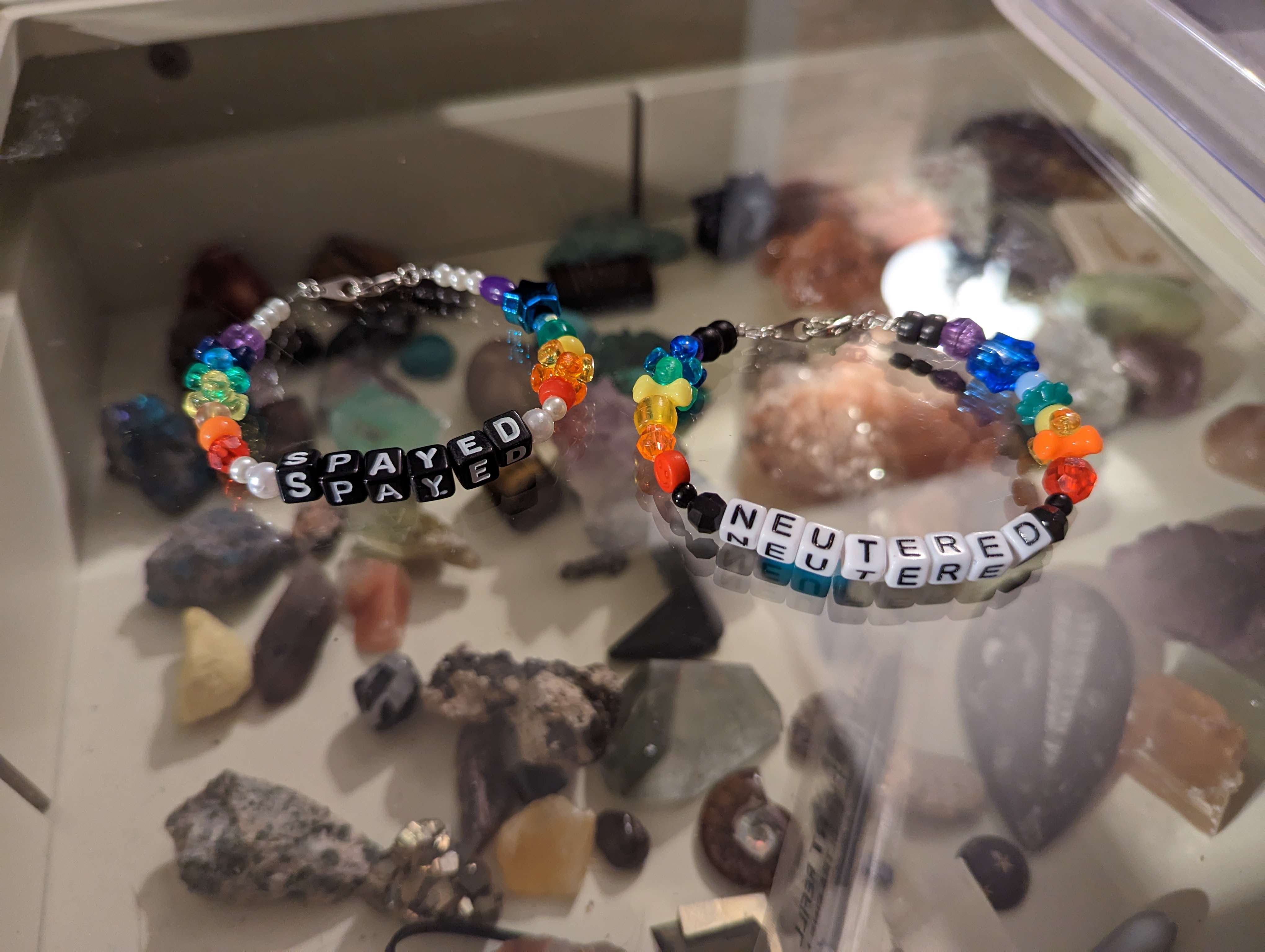 spayed & neutered, 2024. post-consumer plastic, metal, faux pearls | sodom & gomorrah, 2025. post-consumer plastic, metal, faux pearls |